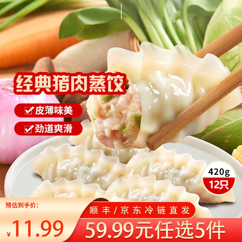 旗舰店三全饺子王煎饺轻食荞麦蒸饺速冻饺子 饺子王经典猪肉蒸饺(12只)420g