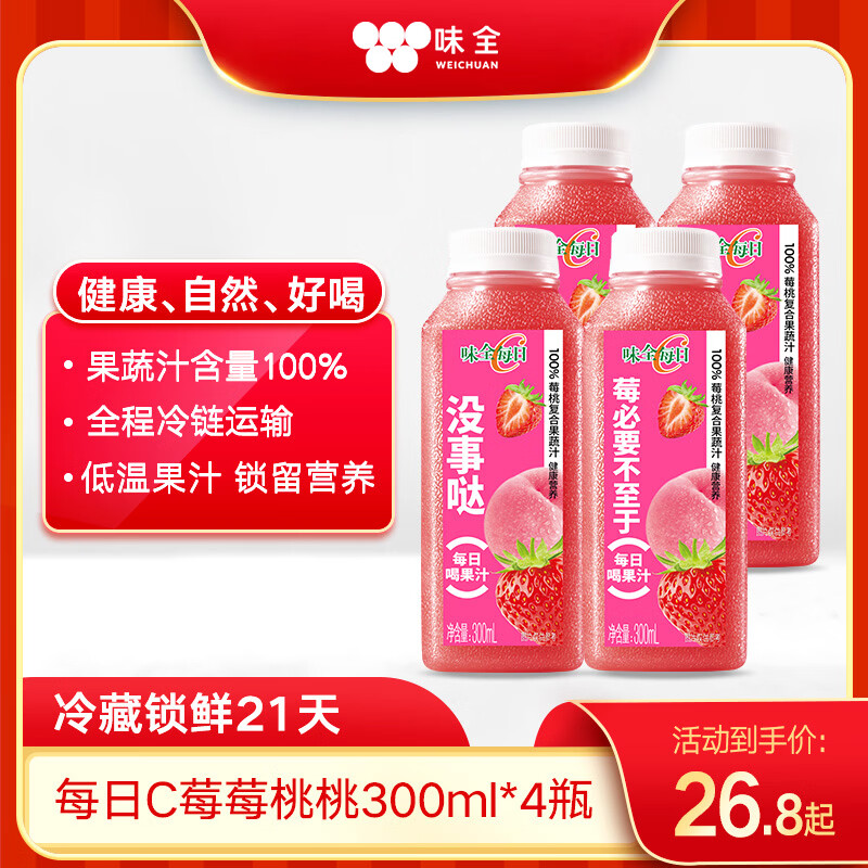 自营味全每日C莓莓桃桃300ml*4冷藏果蔬汁饮料 聚会送礼