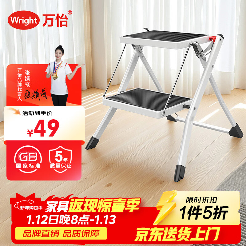 自营万怡(WRIGHT)梯子家用梯折叠梯凳人字梯室内登高多功能二步楼梯踏步梯WR2031N