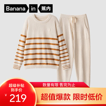 旗舰店蕉内【赵露思同款】绒绒505H睡衣男女士可外穿保暖情侣秋冬家居服套装 【女士】尤白条纹 XL