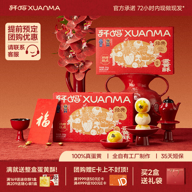 自营轩妈家短保蛋黄酥红豆味55g*6枚伴手礼中式糕点零食礼盒源头直发包邮
