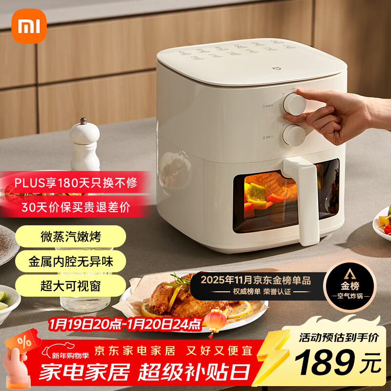 自营米家小米空气炸锅N1 家用多功能电炸锅 微蒸汽嫩烤 透明可视化免翻面 金属内腔不沾锅 大容量5升