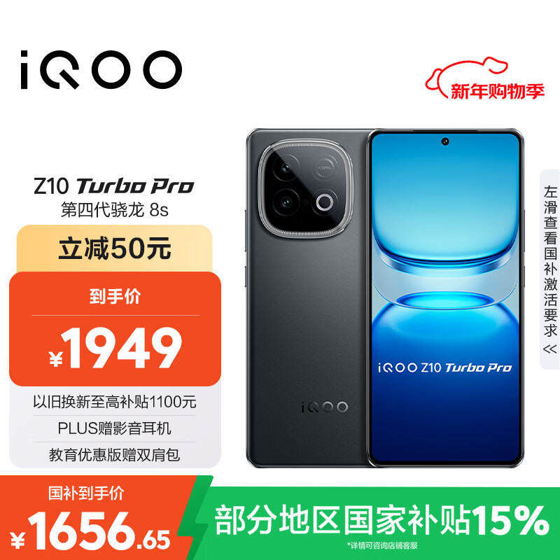 自营vivo iQOO Z10 Turbo Pro 12GB+256GB 星穹黑 第四代骁龙8s 120W超快闪充 电竞手机 国家补贴