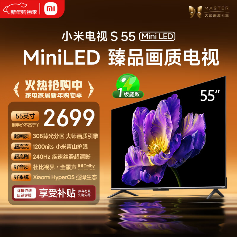 自营小米电视S55 Mini LED 55英寸 MiniLED308分区 4GB+64GB 1200nits 【小户型推荐】L55MA-SPL
