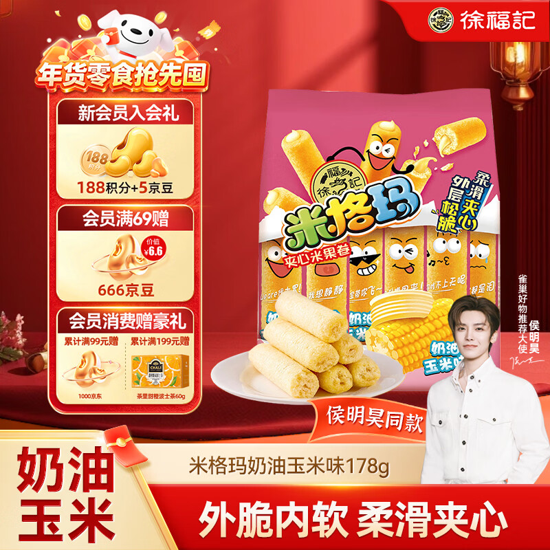 自营徐福记米格玛夹心米果卷奶油玉米味178g/袋休闲零食早餐小包装解馋零食