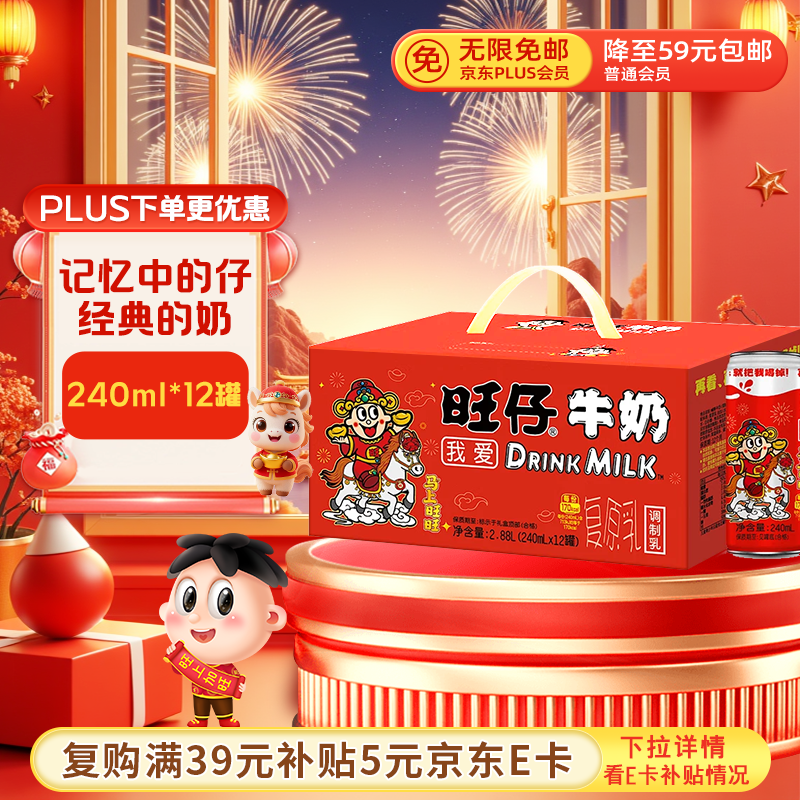 自营旺旺 旺仔牛奶 240ml*12罐 马年生肖版限定礼盒装 年货节送礼佳品
