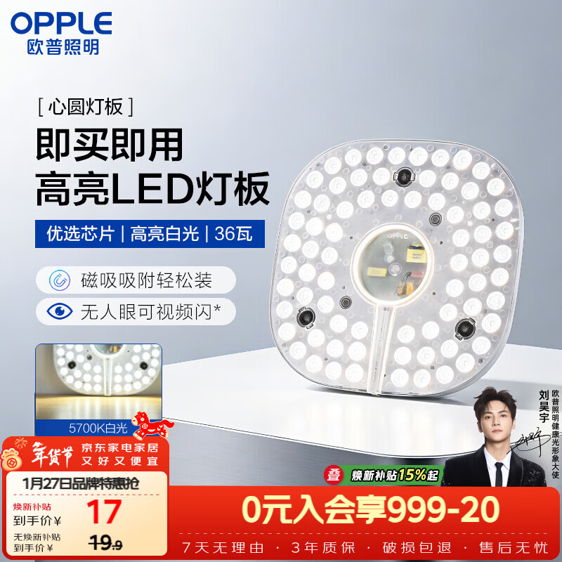 自营欧普照明(OPPLE)led吸顶灯改造灯板圆形节能灯条贴片替换灯盘光源灯珠 35W白光