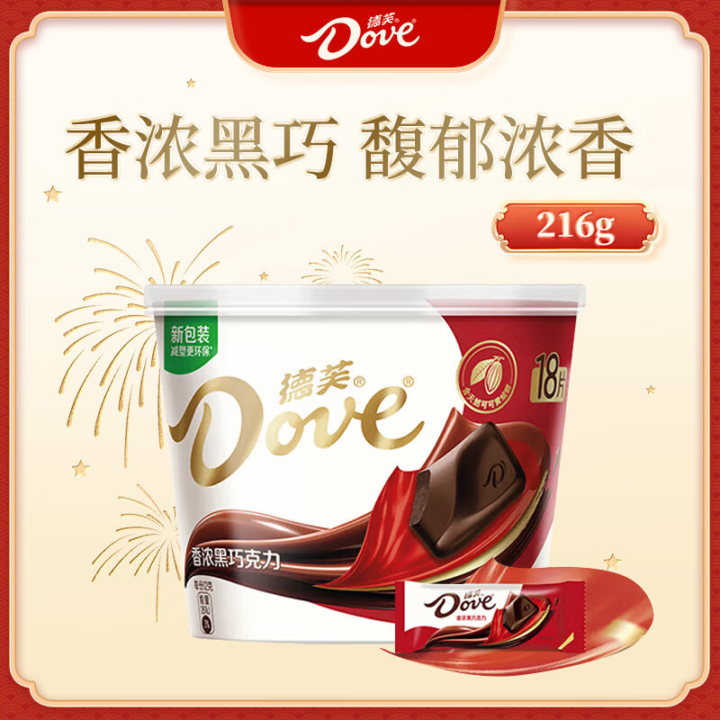 自营德芙 香浓黑巧克力 碗装18粒216g 休闲儿童零食 糖果 生日礼物 送礼