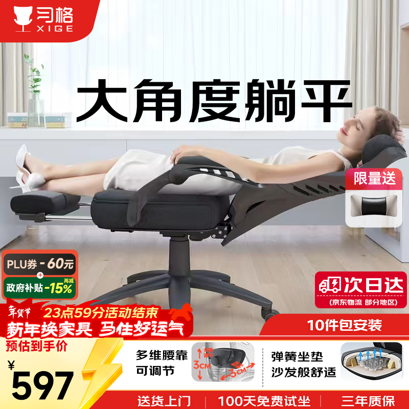 自营习格926办公椅子人体工学椅躺椅人工力学座椅老板电脑椅午睡两用午休