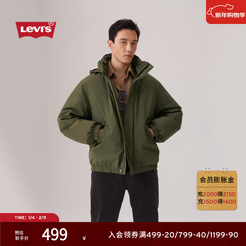 旗舰店Levi's李维斯情侣同款简约休闲轻薄防寒舒适保暖羽绒服休闲外套 深绿色 2XL 女生建议拍小一码
