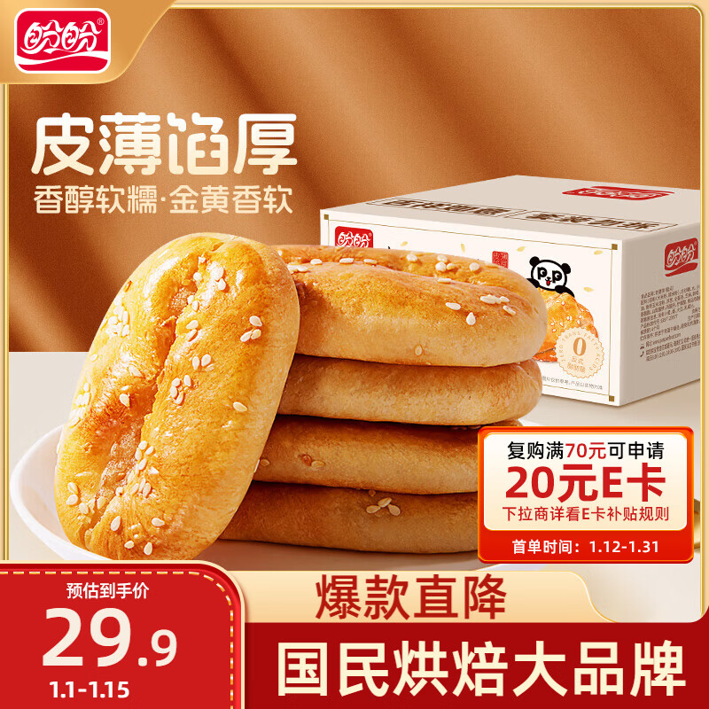 自营盼盼老婆饼 休闲零食早餐饼传统糕点老式酥饼中式小吃 1200g/箱