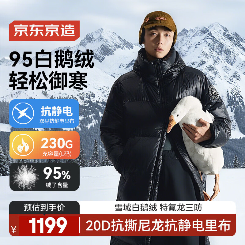 自营京东京造黑金鹅绒服三防羽绒服男长款男士外套新年衣服男女同款 曜石黑XL