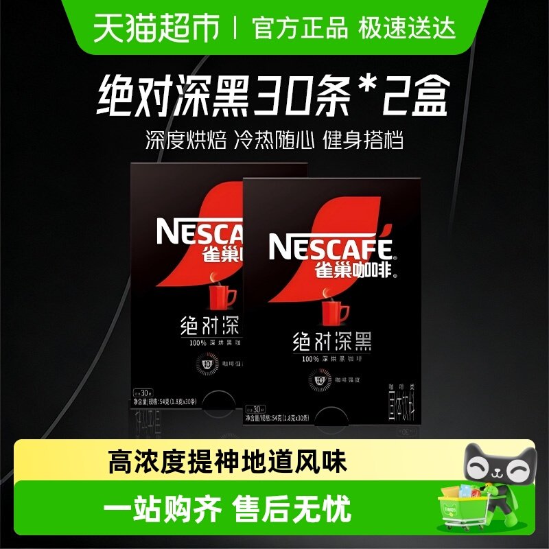 【下拉详情领优惠】雀巢咖啡绝对深黑速溶黑咖啡30条*2盒