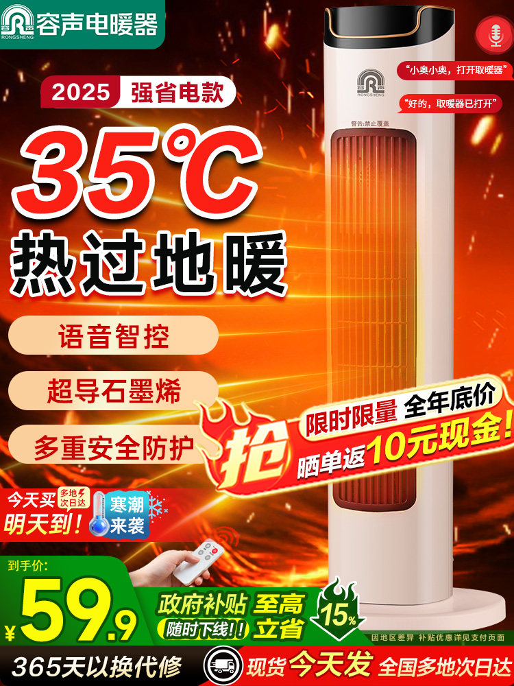 容声暖风机家用取暖器石墨烯省电智能室内浴室暖风器电暖风电暖器