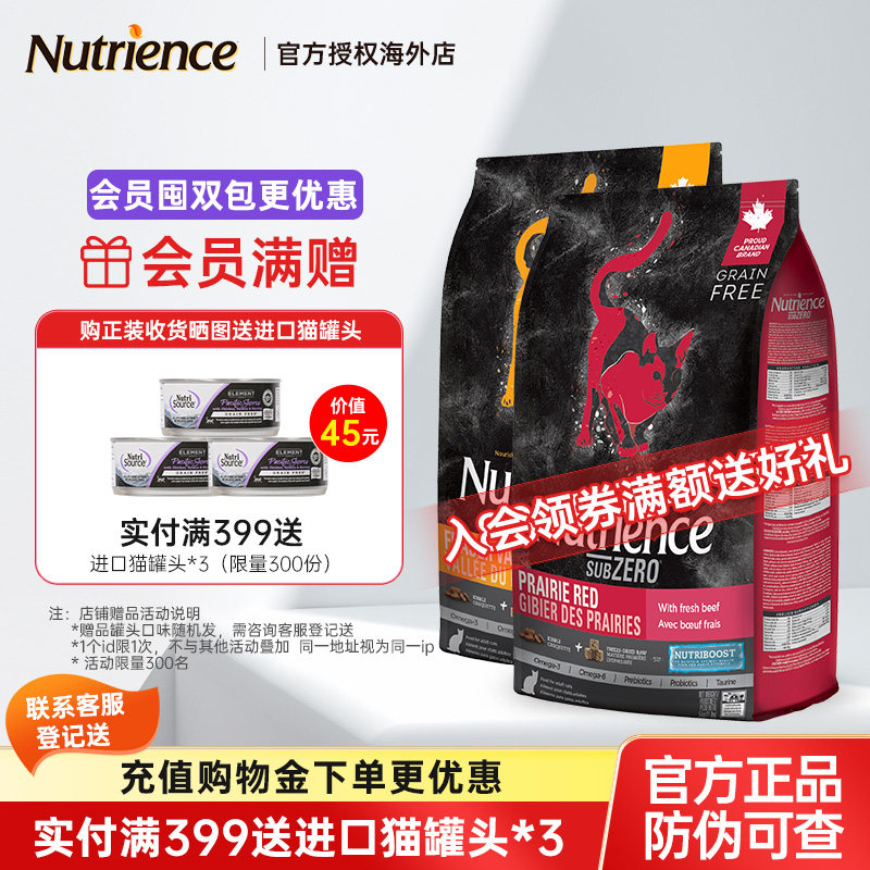【热卖推荐】Nutrience纽翠斯猫粮黑钻冻干红肉禽肉全猫粮5磅11磅