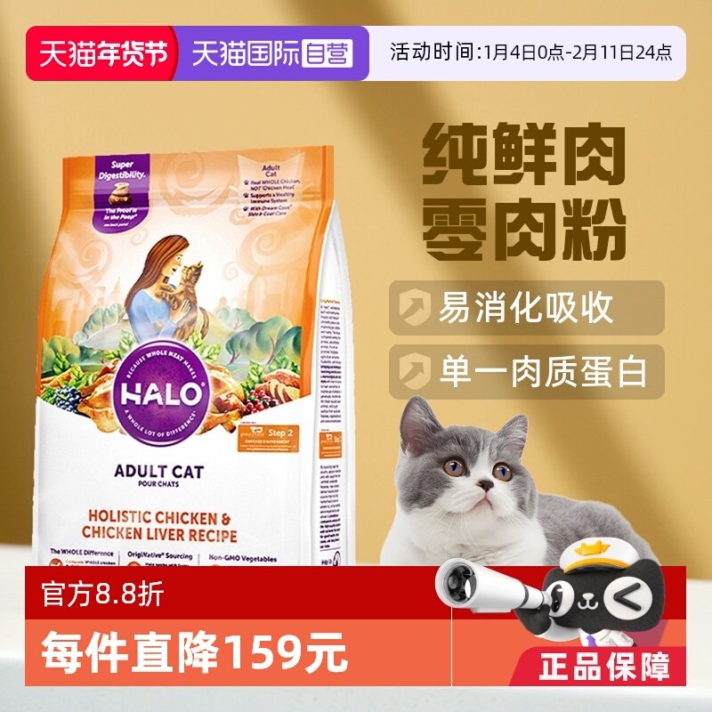自营【自营】美国Halo自然光环纯原装进口鲜肉猫粮-成猫鸡10磅