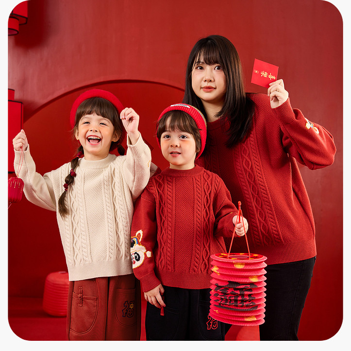 [亲子装]嘟嘟家男童年服儿童拜年服女童毛衣洋气女宝年衣红色冬季