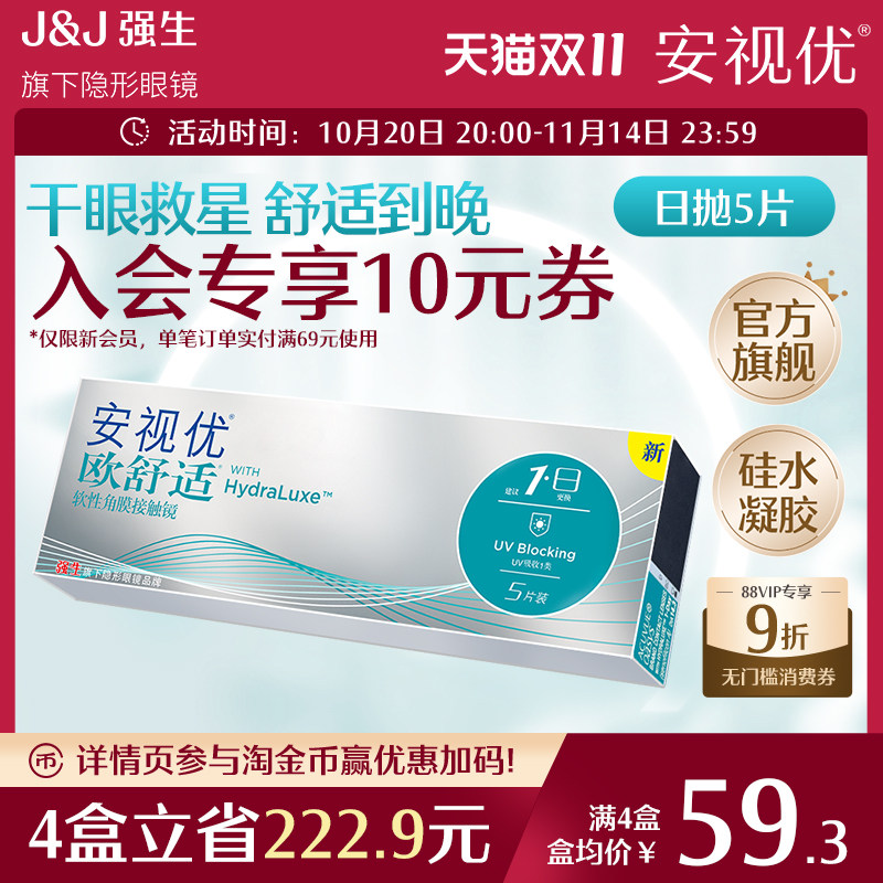 旗舰店强生欧舒适日抛小泪片隐形眼镜硅水凝胶5片安视优旗舰店acuvue