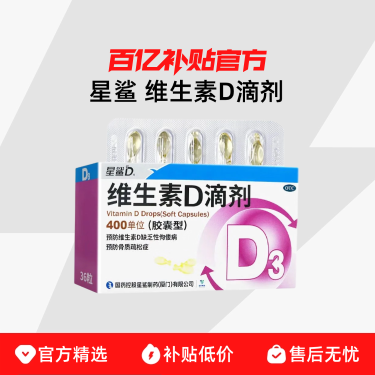 百亿补贴星鲨维生素D滴剂(胶囊型)400IU儿童成人促进钙磷吸收