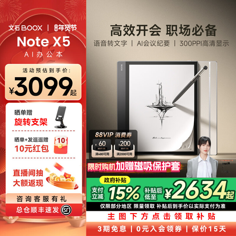 旗舰店【支持多地国补】文石BOOX NoteX5 10.3英寸AI办公本 NoteX5手写电纸本AI墨水屏电子书阅读器平板办公笔记本