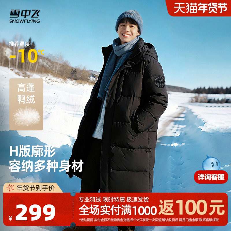 旗舰店雪中飞2025冬新款男女连帽长款羽绒服简约袖标时尚加厚大气百搭