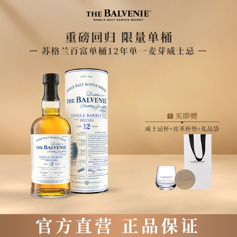 旗舰店【官方】苏格兰百富12年初次灌装单桶陈酿单一麦芽威士忌