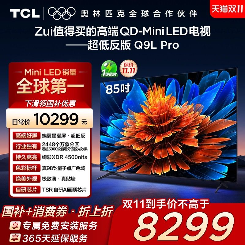 旗舰店TCL 85Q9L Pro 85英寸 QD-Mini LED 蝶翼星曜屏 2448万象分区电视
