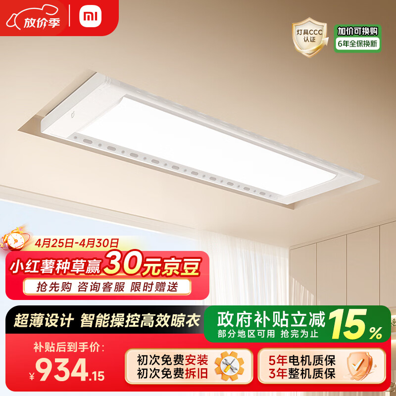 自营米家智能晾衣机Pro月光白 【国家补贴】小米电动隐形晾衣架超薄嵌入