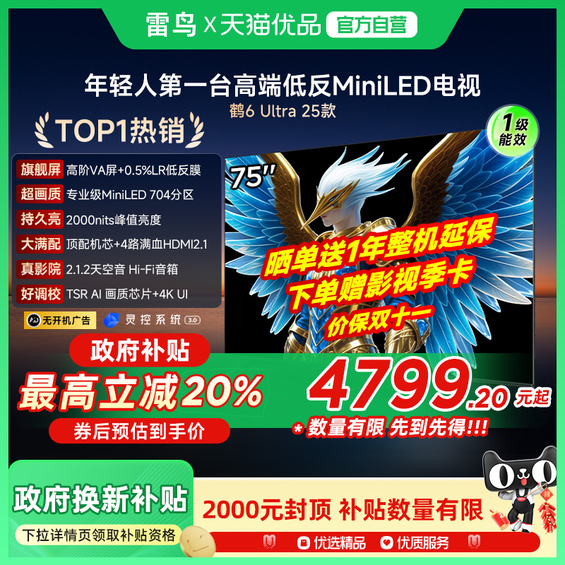 雷鸟鹤6 Ultra 25款75英寸QD-MiniLED超低反电视机75S595C Ultra