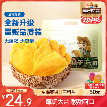 三只松鼠芒果干500g/袋 休闲零食水果干蜜饯果脯娱乐办公室小吃量贩装