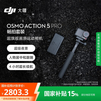 大疆 【国家补贴】Osmo Action 5 Pro 畅拍套装 超旗舰画质运动相机 户外摩托骑行潜水徒步vlog相机