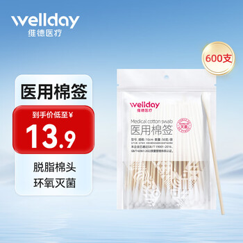 维德(WELLDAY)医疗医用棉签消毒棉棒无菌一次性棉签木棒大头单头化妆掏耳医用 【灭菌棉签600支】50支*12袋