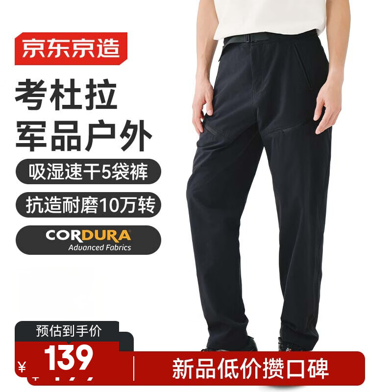 京东京造秋季700考杜拉专业户外探险长裤耐磨抗撕拉速干裤子男 黑色 L