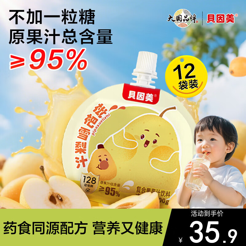 贝因美(Beingmate)枇杷雪梨汁100g*12袋清润梨汁儿童饮料儿童果汁宝宝饮品饮料