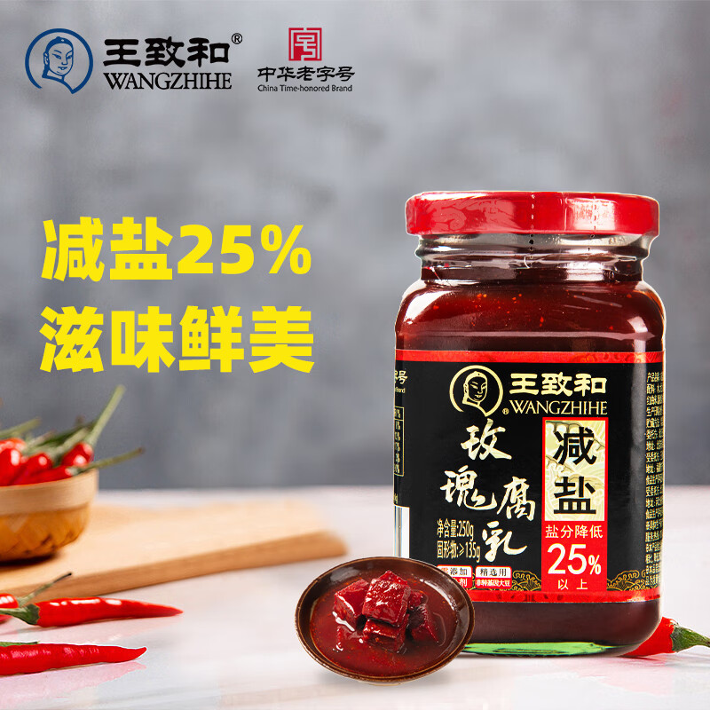 王致和 中华老字号 减盐25%玫瑰腐乳250g 拌面 火锅调料 下饭菜