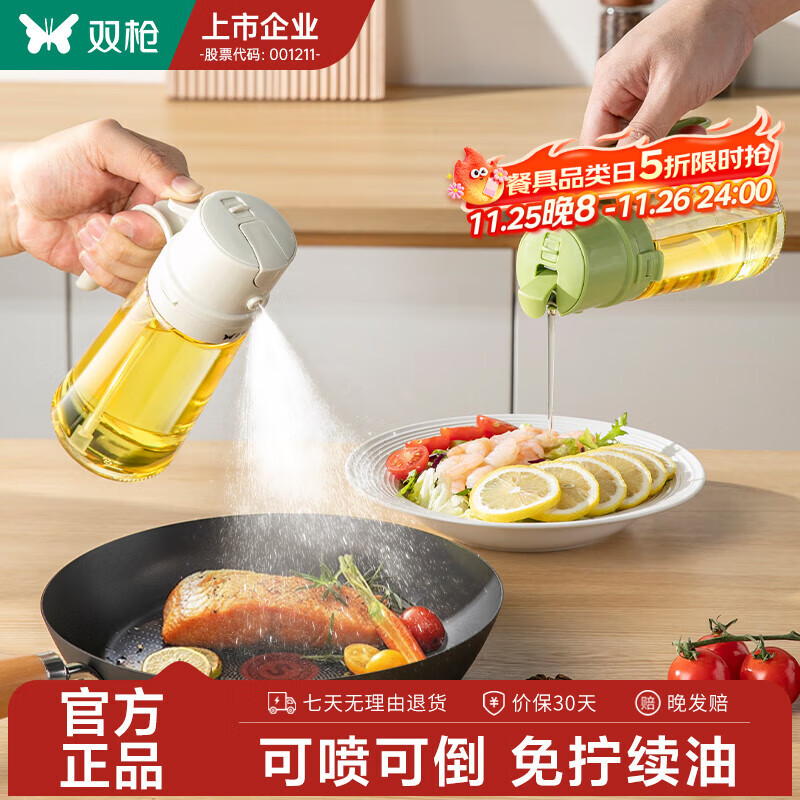 双枪喷倒两用油壶家用厨房玻璃食品级酱油醋调料瓶雾化喷油壶油瓶 2件套【白+绿】
