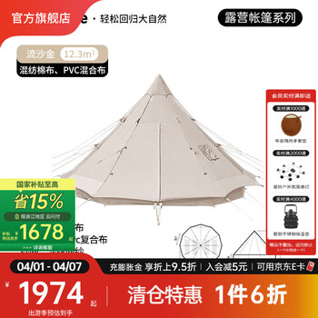 NatureHike挪客朗12.3棉布金字塔帐篷户外露营大空间印第安多人野营家庭营地 流沙金/12.3㎡大空间(不含地布)