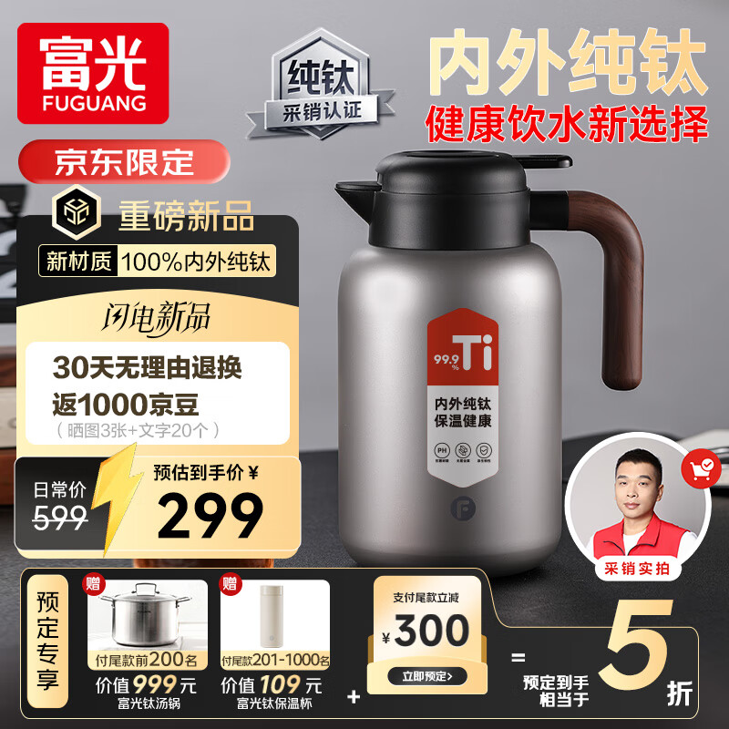 富光纯钛保温壶家用保温水壶内外纯钛真空暖水壶热水壶礼物京东限定