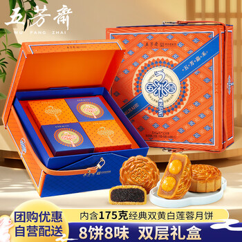 五芳斋 月饼 中华老字号中秋礼品糕点 双黄莲蓉五芳月饼礼盒815g