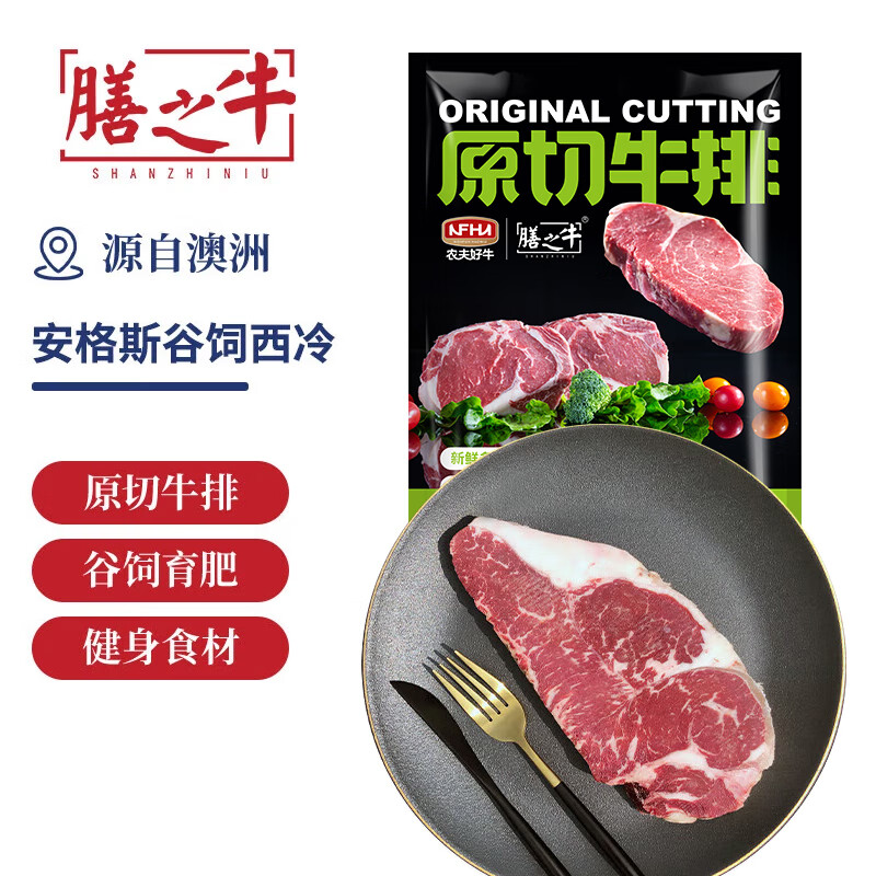 膳之牛澳洲安格斯谷饲原切西冷牛排厚切300g M3生鲜牛肉源头直发
