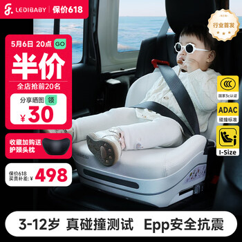 乐蒂宝贝儿童安全座椅3-12岁宝宝通用款汽车大童增高垫简易坐垫便携式 沧海号月影灰官配版