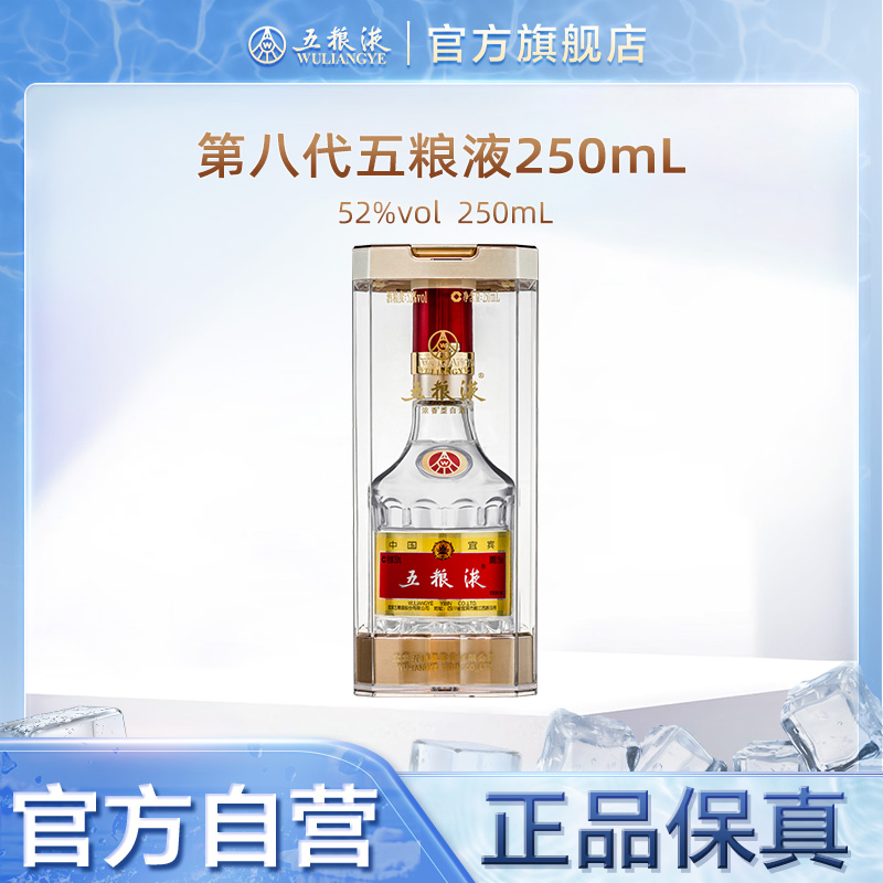 【官方自营】第八代五粮液52度250ml浓香型白酒收藏摆柜