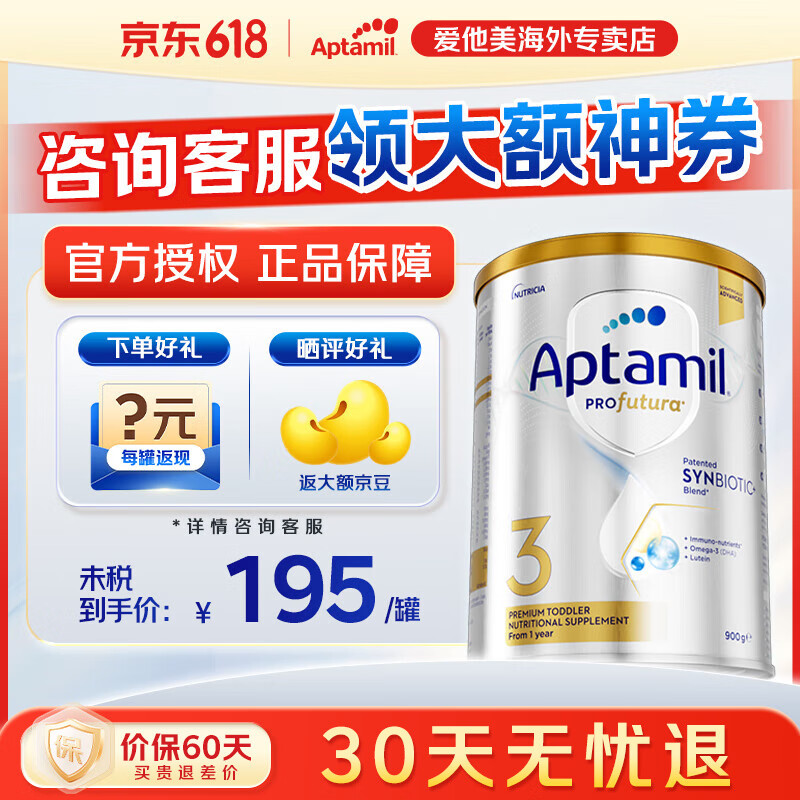 爱他美(Aptamil)澳洲白金版叶黄素DHA新西兰婴幼儿配方牛奶粉 日期新鲜 官方授权 【30天无忧】3段效期至27年2月 900g