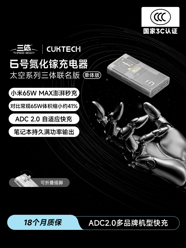 【三体联名款】CUKTECH酷态科6号电能卡片PD65W超薄氮化镓充电器适用苹果iPhone17ProMax/Air苹果小米