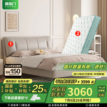 喜临门真皮艺双人大床主次卧室现代简约软靠包尼亚pro[床架] 云雾米+光年护脊3.0床垫-偏硬 1.8*2米