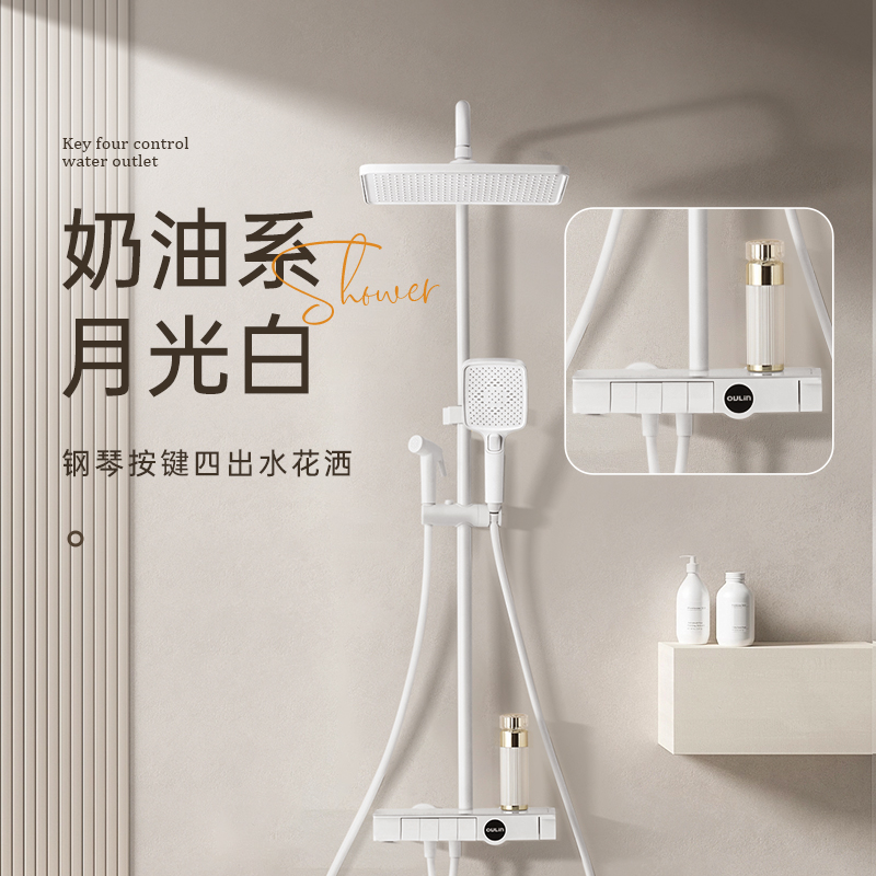 欧琳奶油风白色花洒淋浴花洒套装家用钢琴键浴室喷枪卫浴花洒