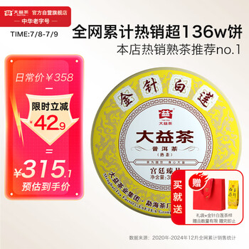 大益TAETEA茶叶普洱茶饼茶 金针白莲熟茶357g/饼2201批次 中华老字号