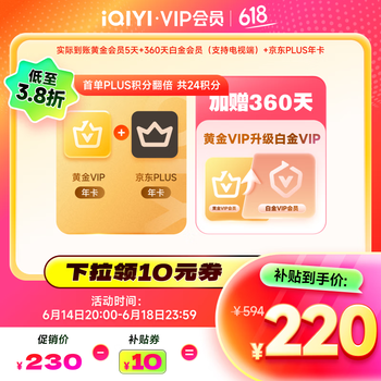 爱奇艺黄金VIP会员年卡加京东PLUS会员年卡