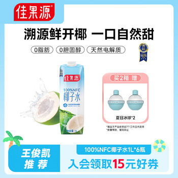 佳果源椰子水【王俊凯推荐】佳农旗下泰国进口100%NFC椰青椰汁饮料整箱 【大瓶畅饮】泰国椰子水1L*6瓶