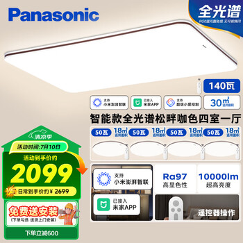 松下(Panasonic)吸顶灯全光谱护眼智能客厅灯咖色智能四室一厅【包安装】